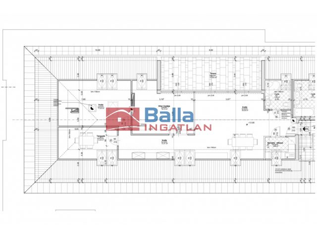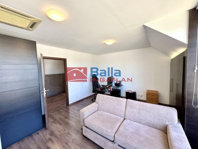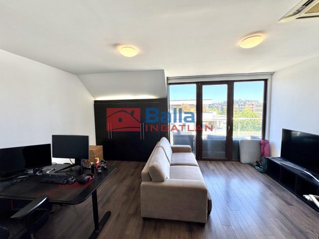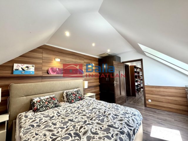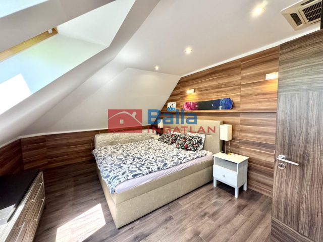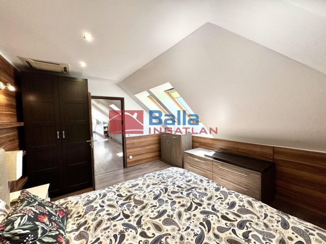 A nagy lakásban található egy nagyon hangulatos 28 m2-es amerikai konyhás nappali egy beépített konyhabútorral, gépekkel, melyek a vételárat képezik (ahogy minden beépített bútor). Innen jutunk ki a 24 m2-es rendkívül napos teraszra, ami nagyon jól berendezhető akár jakuzzival, kerti bútorokkal, napernyőkkel, grillsütővel. Legnagyobb szobája 20 m2-es, mellette található egy 18 m2-es és végül egy 10 m2-es. Mindegyik külön nyílik a közlekedőből. A sok beépített szekrénynek köszönhetően nagyon jól ki vannak használva a nem annyira hasznos alapterületek is. A konyha mellett található egy (régen) kis konyha szintén, ez átalakítható akár egy kis dolgozószobának is vagy gardróbnak. Fürdő, wc külön és egyben is. A lépcsőházban kettőt lépve átjutunk a kis lakásba, mely egy 23 m2-es amerikai konyhás nappaliból, egy 6 m2-es szobából és egy fürdőszobából áll.