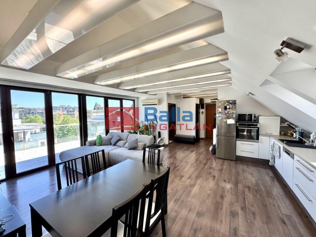 MEGVÉTELRE KÍNÁLOK AZ ALLEHOZ KÖZEL EGY ÚJSZERŰ, PENTHOUSE, 143 M2-ES, 5 + 1 FÉLSZOBÁS, AMERIKAI KONYHÁS, NAGY TERASZOS, NAPFÉNYES, CSENDES, JÓL KIADHATÓ, JÓ ELOSZTÁSÚ, KÉT KÜLÖN LAKÁST, 4 DB GARÁZZSAL ÉS TÁROLÓVAL!