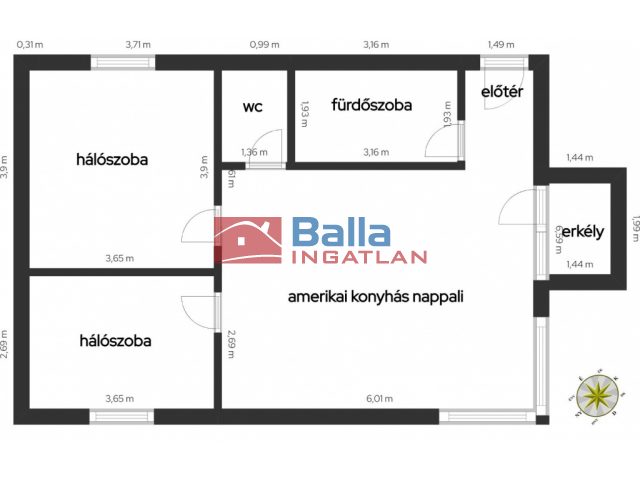 52 m² terület 2 szoba