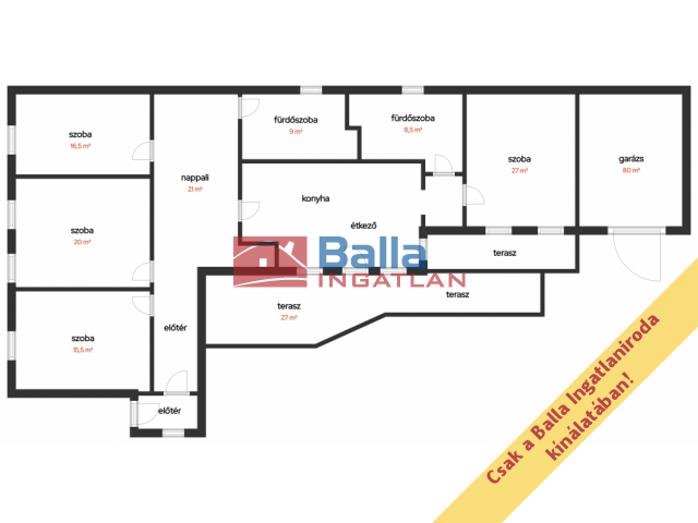 Egyéb tulajdonságok: tehermentes, akadálymentes, kandalló, terasz (30 m²), pince, gardróbszoba, kamra, külön étkező, külön wc, garázs, zárt autóbeálló
