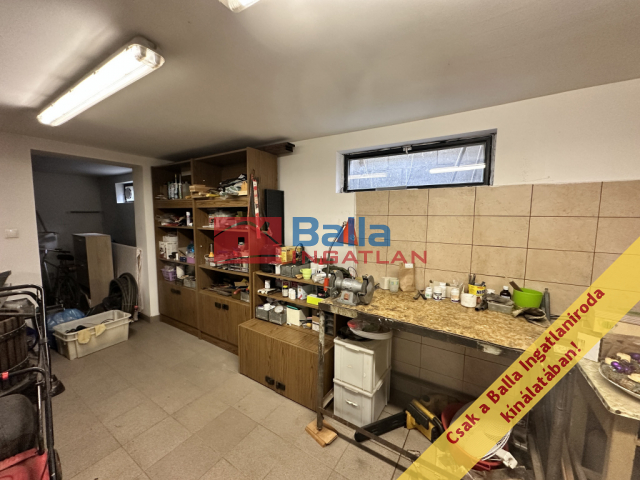 PINCE, GARÁZS ÉS MŰHELY: A lakórész alatt teljes terjedelmében (szintén kb. 80 m²) pince húzódik. Itt kapott helyet a garázs, egy műhely (barkácsolóknak álom!), valamint a gépészet. Az ipari áram (3x16A) kiépítése megtörtént, így nagyobb gépek üzemeltetése sem akadály.A szuterén radíátoros fűtéssel ellátott.